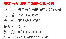 地 址:靖江市季市鎮(zhèn)季市村通江北路152號(hào)  電 話:0523-84542216  傳 真:0523-84549080  E-mail:77507366@qq.com